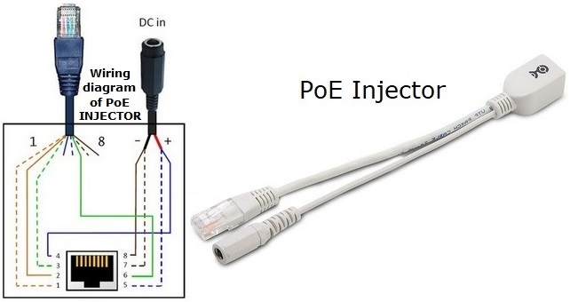The PoE injector is used to inject power onto the Ethernet cable.